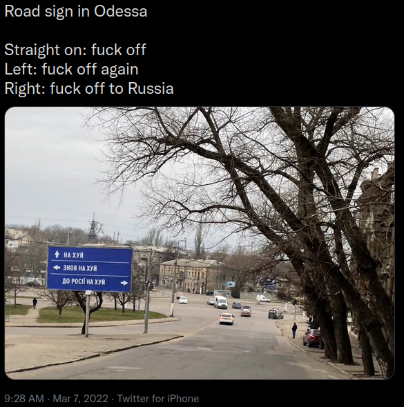 Put signs in Russian language depicting, “Welcome to Hell RuSSki”